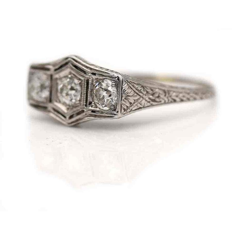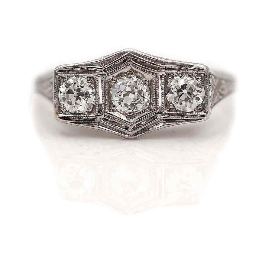 Art Deco .75 CTW Three Stone Old Mine Cut Diamond Engagement Ring