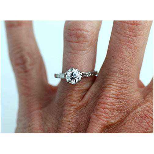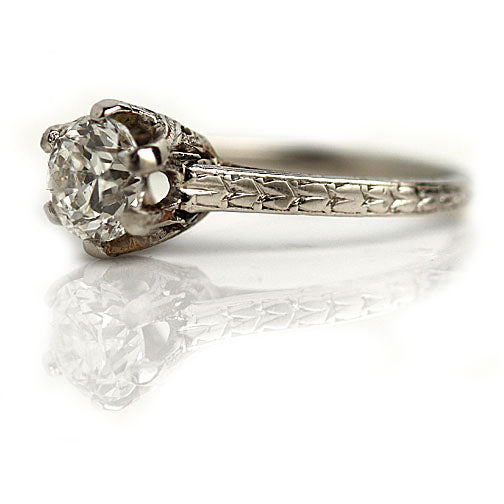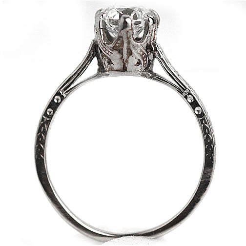 Art Deco .97 Ct Antique Hand Engraved Solitaire Engagement Ring GIA G/SI2