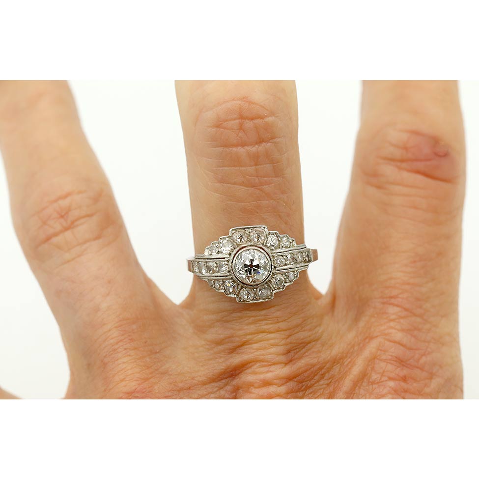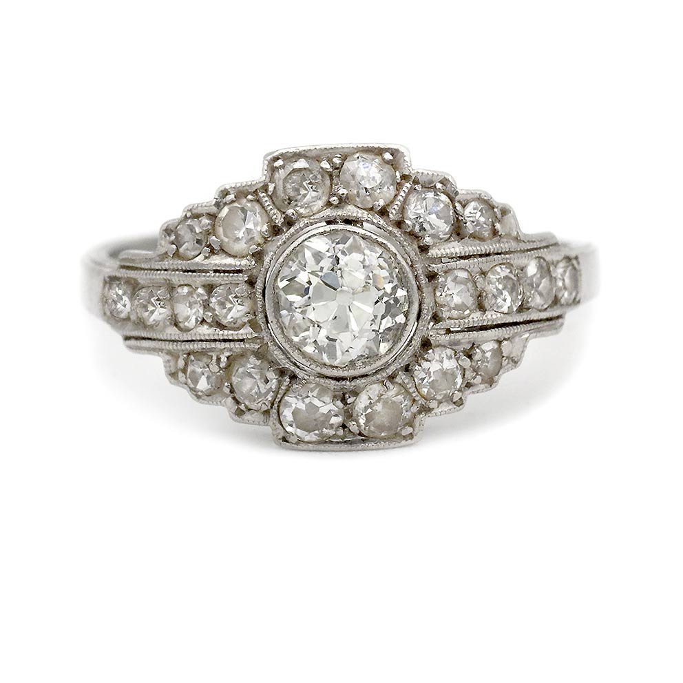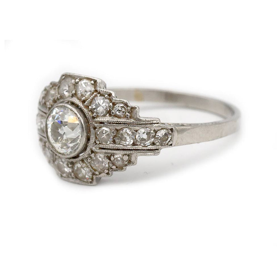 Art Deco Bezel Set .86 CTW Halo Platinum Vintage Engagement Ring