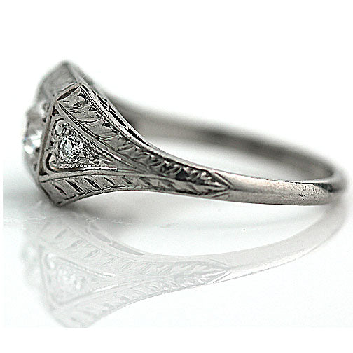 Intricate .36 CTW Art Deco Filigree Platinum Vintage Engagement Ring