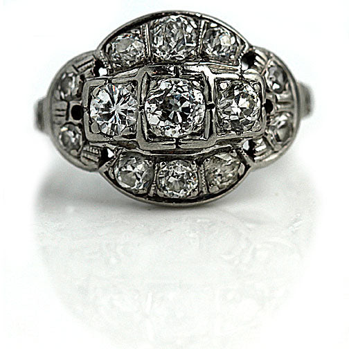 Mid-Century 1.40 CTW 1940s Platinum Vintage Cocktail Ring