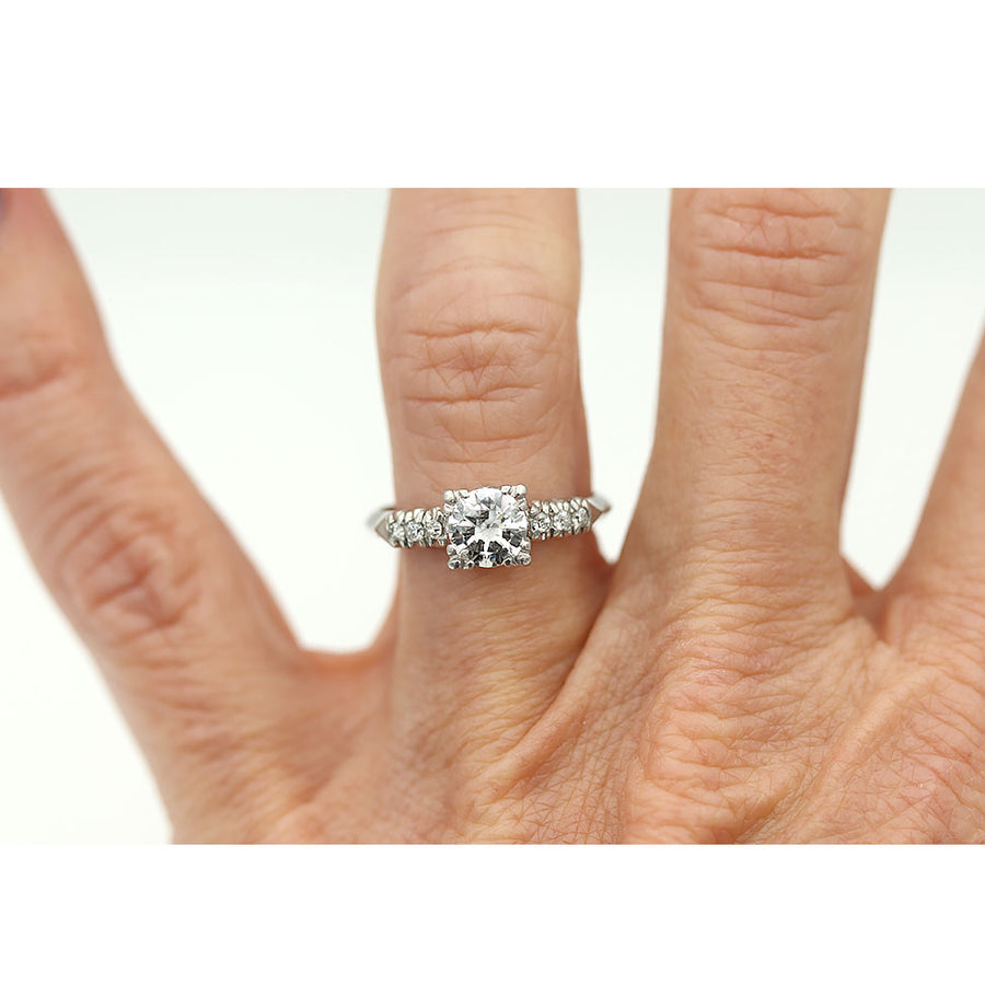 Mid-Century .87 CTW Transitional Cut Diamond Platinum Vintage Engagement Ring
