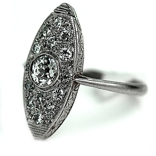 Mid-Century .92 CTW Navette Antique Diamond Dinner Ring