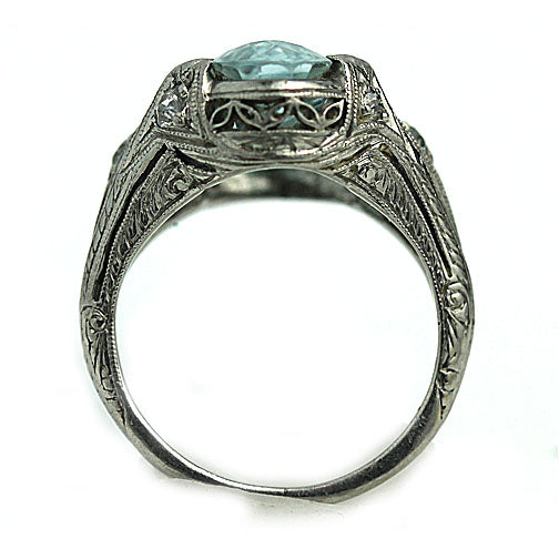 Antique 3.62 CTW Oval Cut Aquamarine Engagement Ring with Side Diamonds