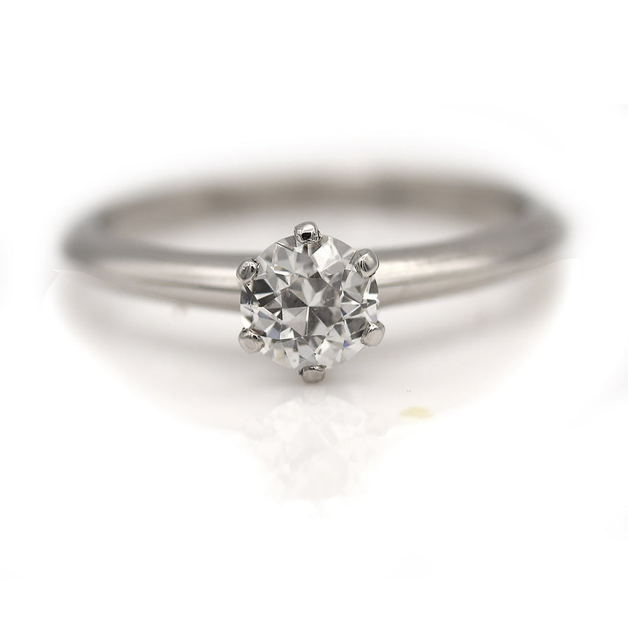 Tiffany .55 CTW Old Mine Cut Diamond Platinum Solitaire Vintage Engagement Ring