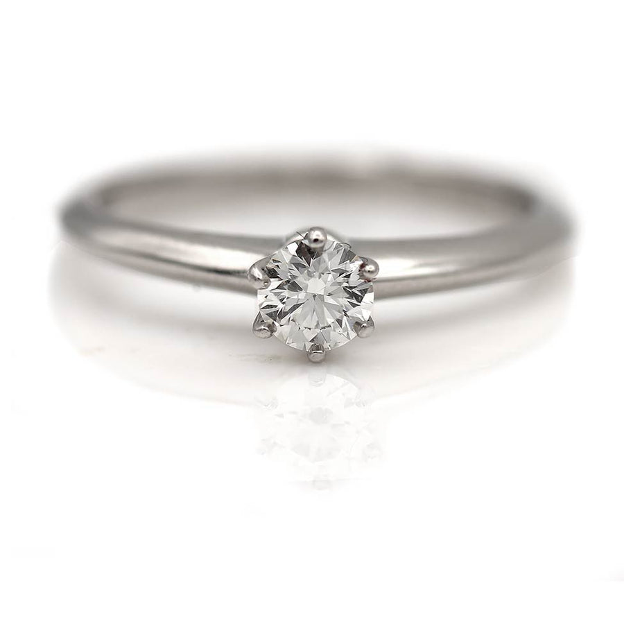 The Tiffany ring is a classic, authentic vintage solitaire engagement ring, by the infamous American jeweler "Tiffany & Co." A glittering .26 carat diamond with I color and VVS1 clarity stars solo in a platinum six (6) prong setting accompanied by a Tiffany certificate. A timeless vintage jewel, in pristine condition. Signed and stamped " Tiffany & Co," # 22902563, with original Tiffany certificate.