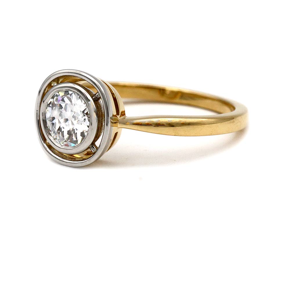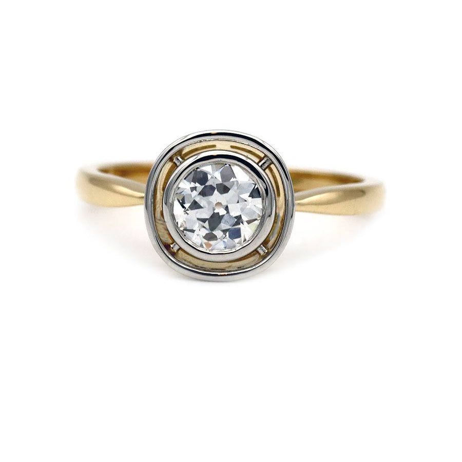 Timeless elegance with the Mene Victorian-style ring, featuring a GIA-certified 1930s .54 ct old European cut diamond (G color, VS1 clarity) in recycled platinum and 18 kt gold, handcrafted in NYC. Ready to ship.