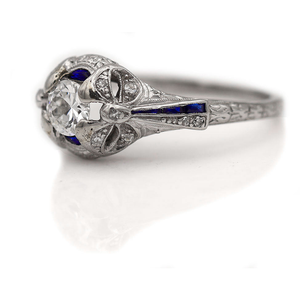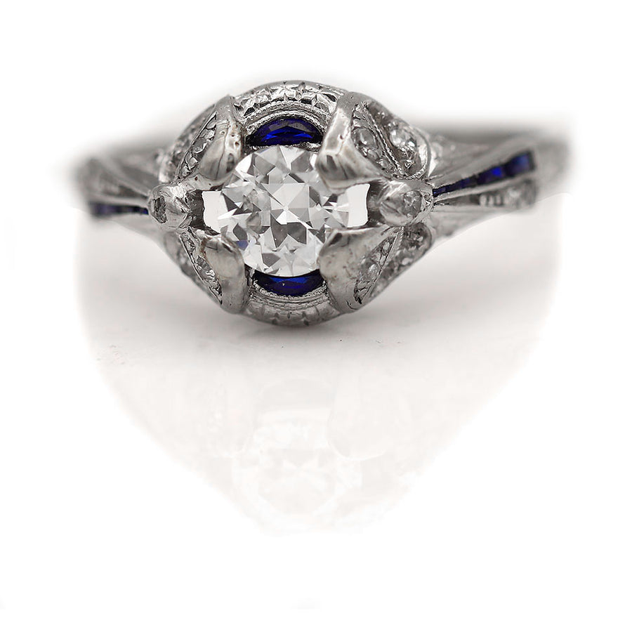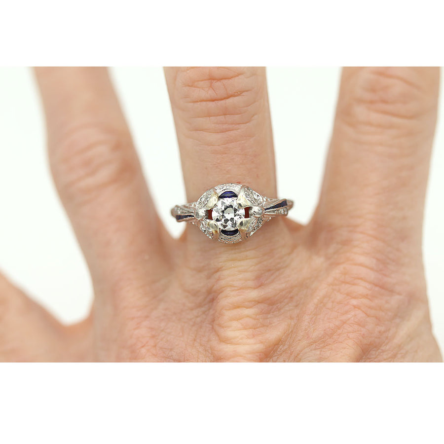 Vintage 1.10 CTW European Cut Diamond Sapphire Art Deco Engagement Ring