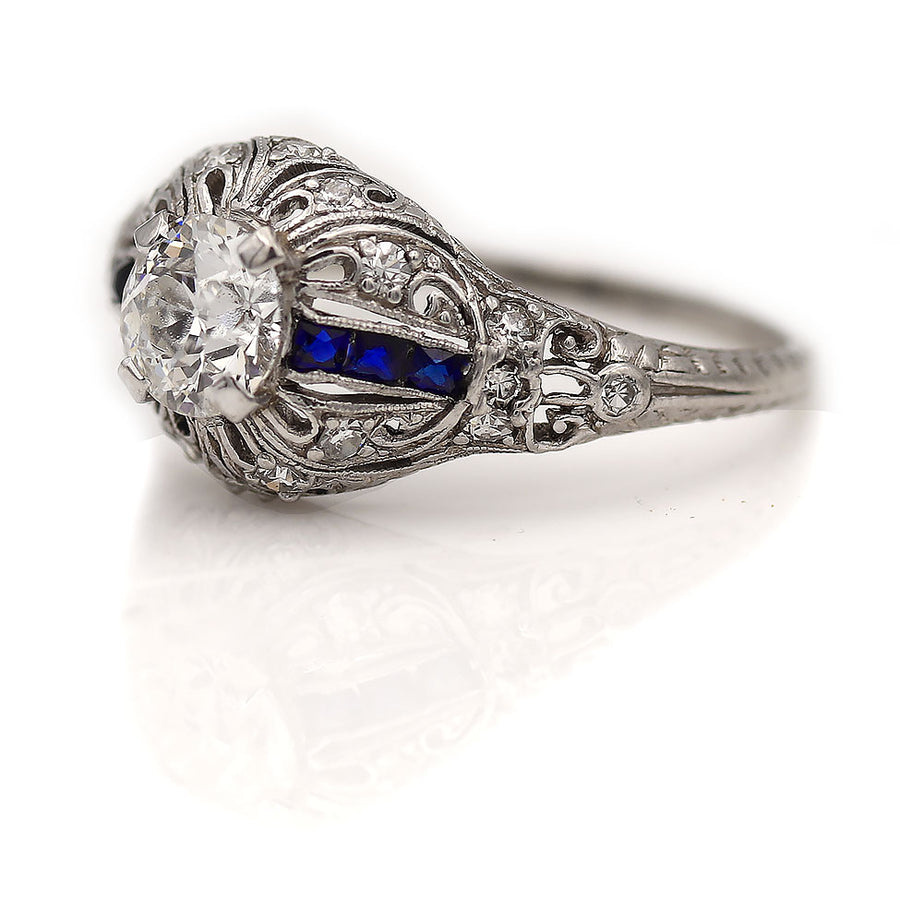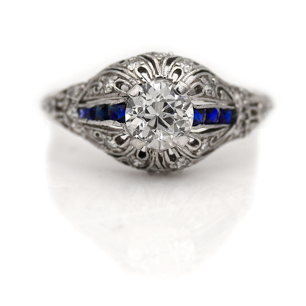Vintage 1.26 CTW Old European Cut Diamond Sapphire Art Deco Engagement Ring