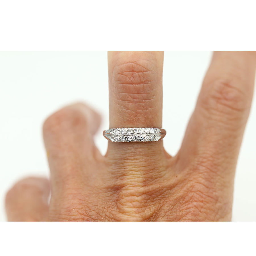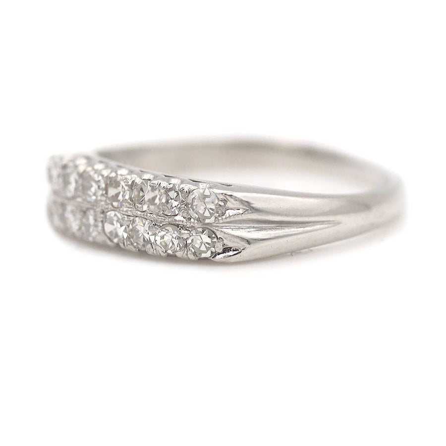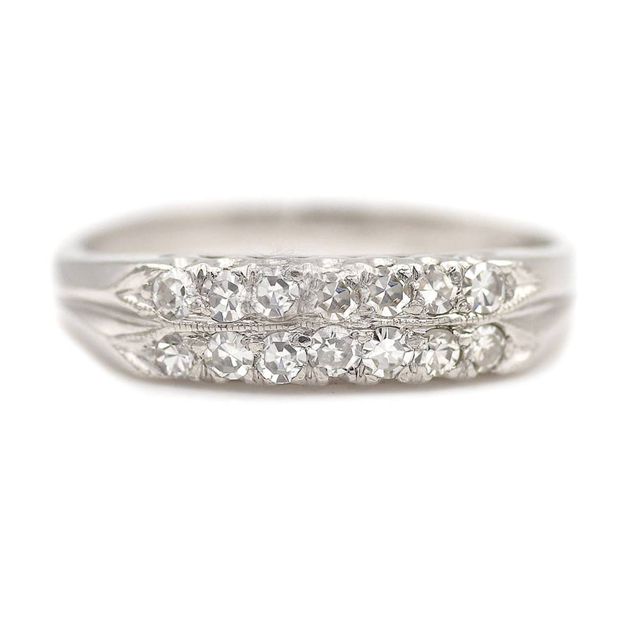 Vintage 2 Row 14 Stone Diamond Platinum Wedding Band