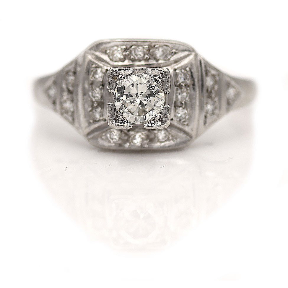 Vintage .52 CTW Square Halo Art Deco Platinum Engagement Ring