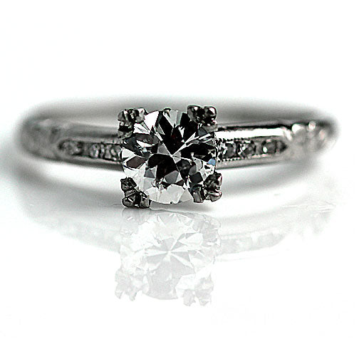 Vintage .65 CTW Platinum Old European Cut Diamond Mid-Century Engagement Ring GIA J/SI2