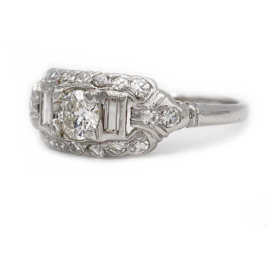 Vintage .82 CTW European Cut Baguette Diamond Art Deco Engagement Ring