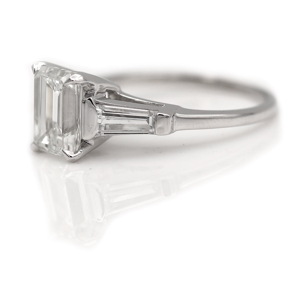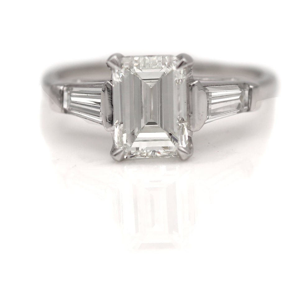 Vintage Emerald Cut Diamond Engagement Ring 2.00 Ct GIA J/SI1