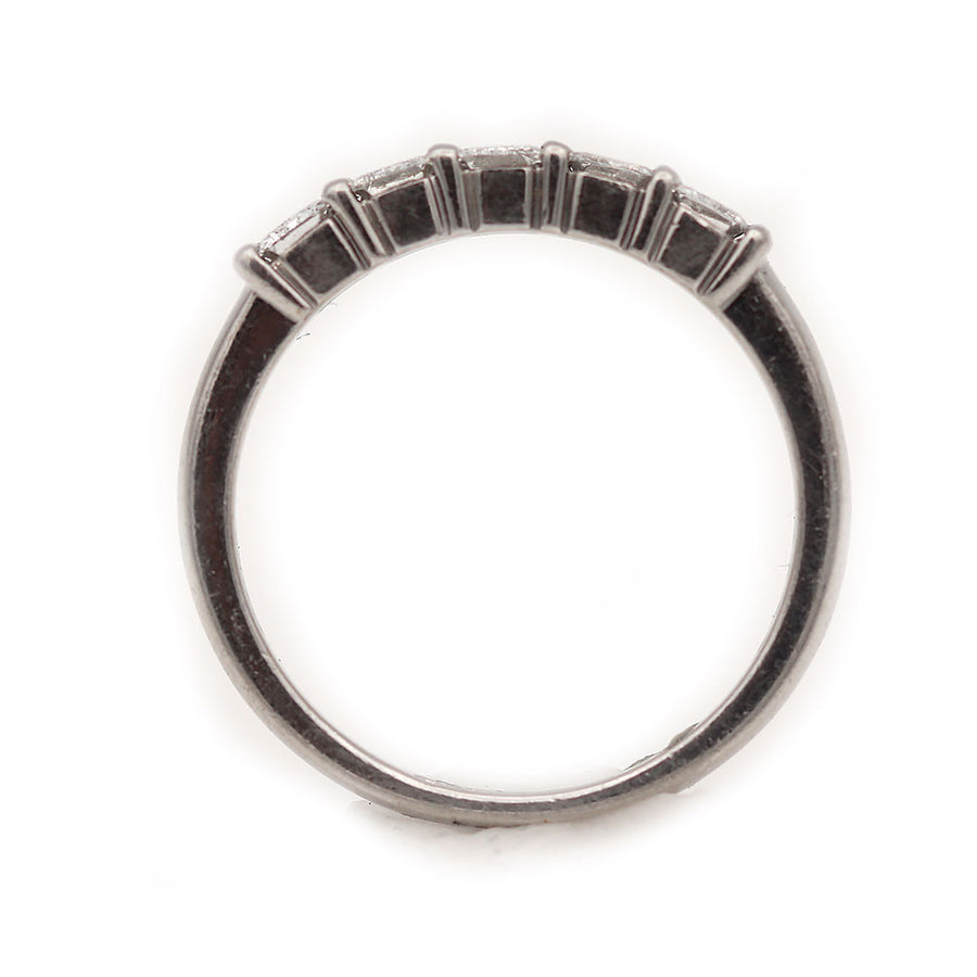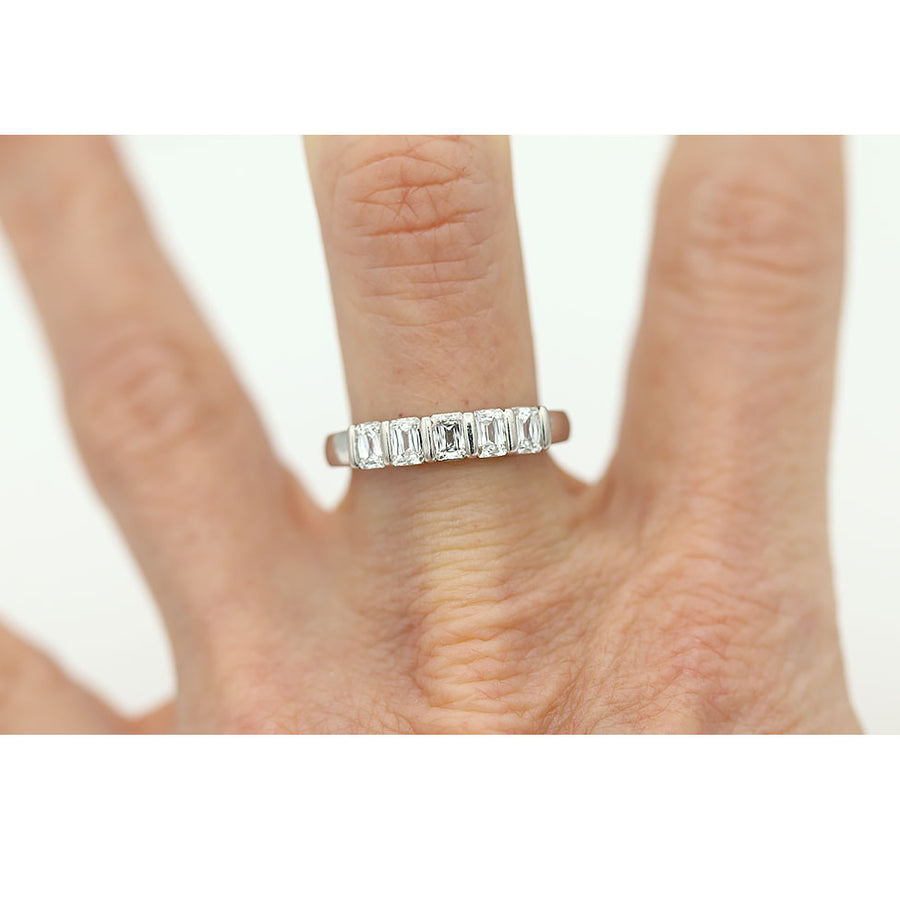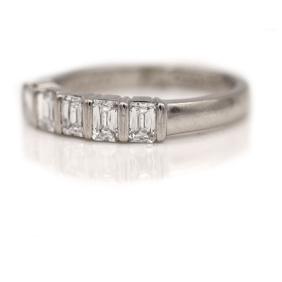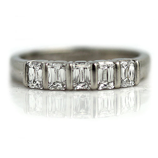 The Milla ring is an authentic vintage wedding ring, circa 1980s, featuring 5 bright-white "Criss Cut" diamonds weighing 1.00 carat with F color and VS2 clarity. Beautifully hand crafted in platinum, this is perfect to wear alone on either hand. In excellent condition. Magnifique!