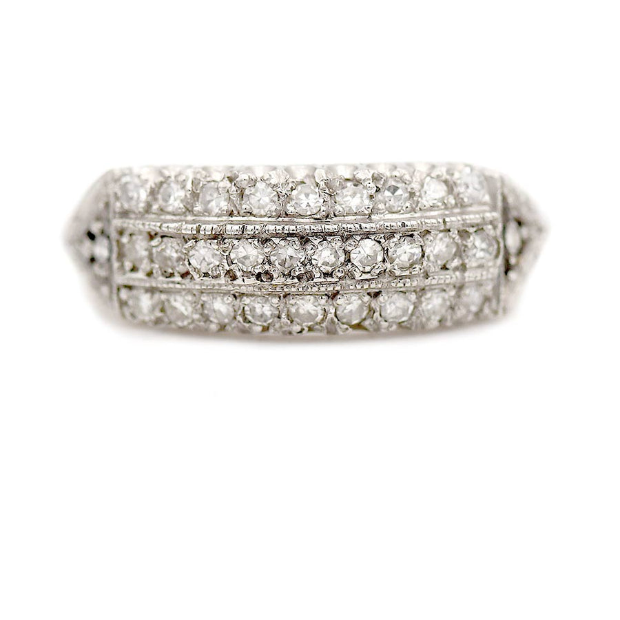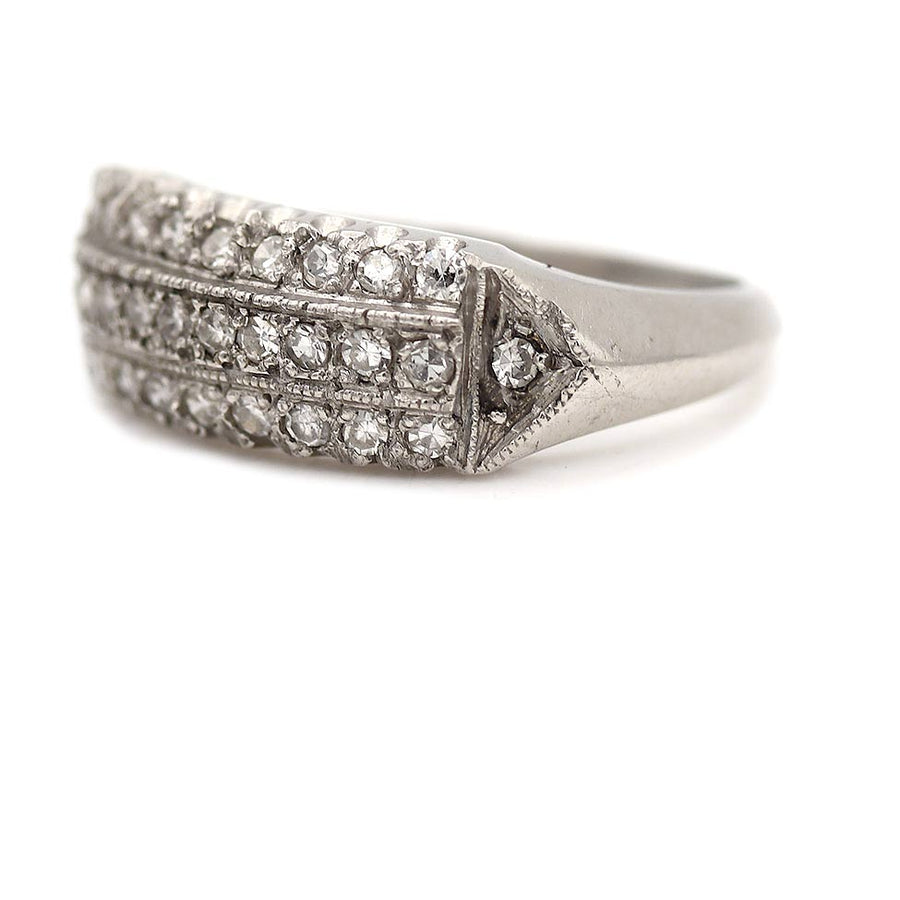Vintage Stackable 3 Row Diamond Wedding Band in Platinum
