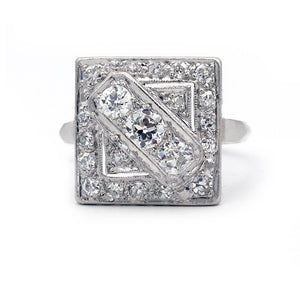 Art Deco .28 CTW Two Tiered Geometric Square Diamond Antique Engagement Ring