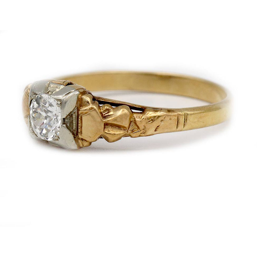 Mid-Century .50 CTW Two Tone European Cut Antique Diamond Engagement Ring