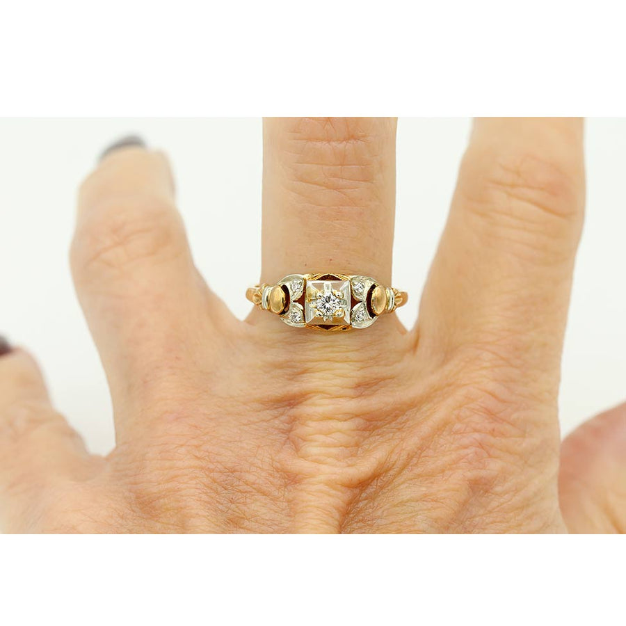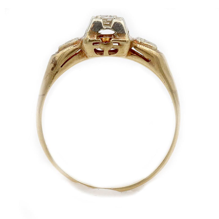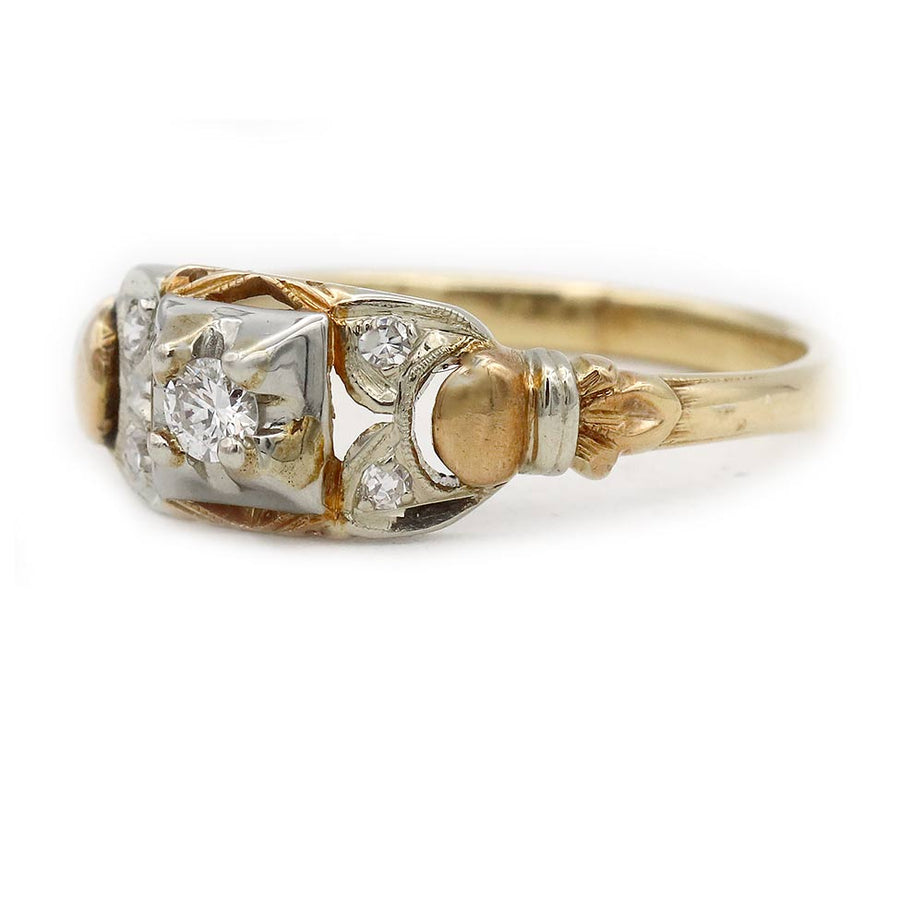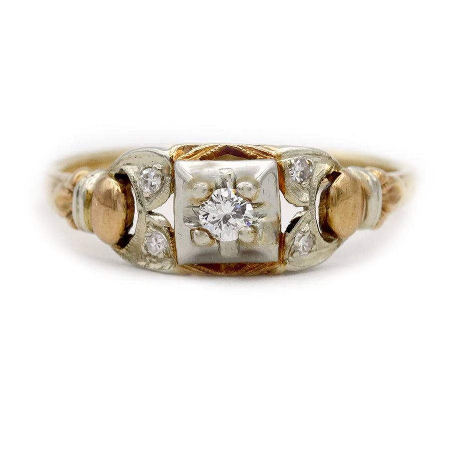 Mid-Century .10 CTW 1940s 14 Karat Two Tone Vintage Diamond Engagement Ring