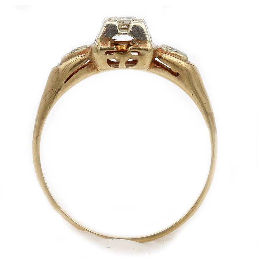 Mid-Century .14 CTW European Cut Diamond Antique Engagement Ring with Side Stones
