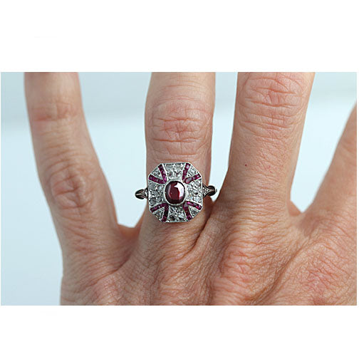 Art Nouveau 1.10 CTW Ruby and Diamond Gemstone Engagement Ring