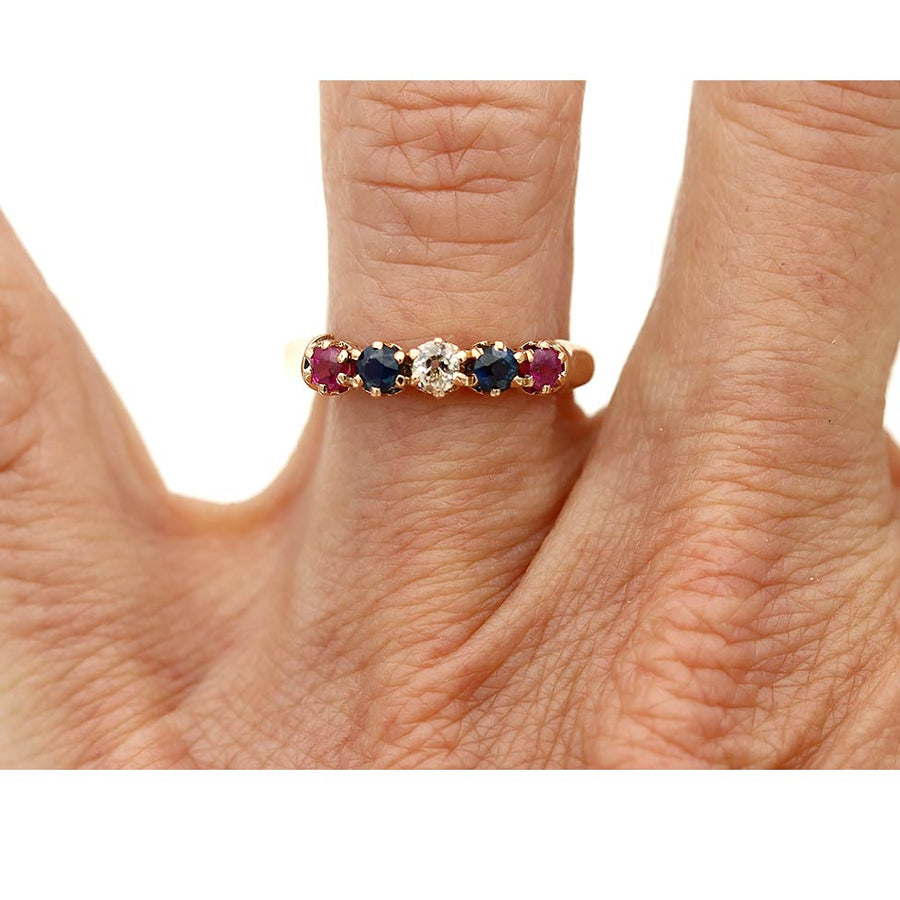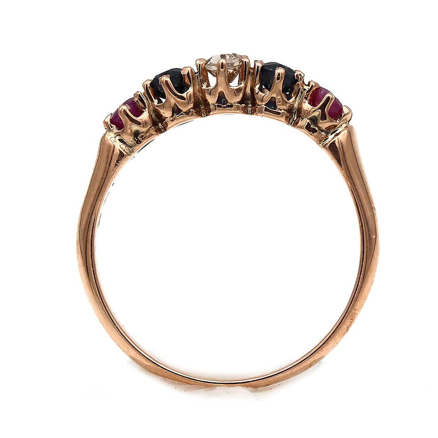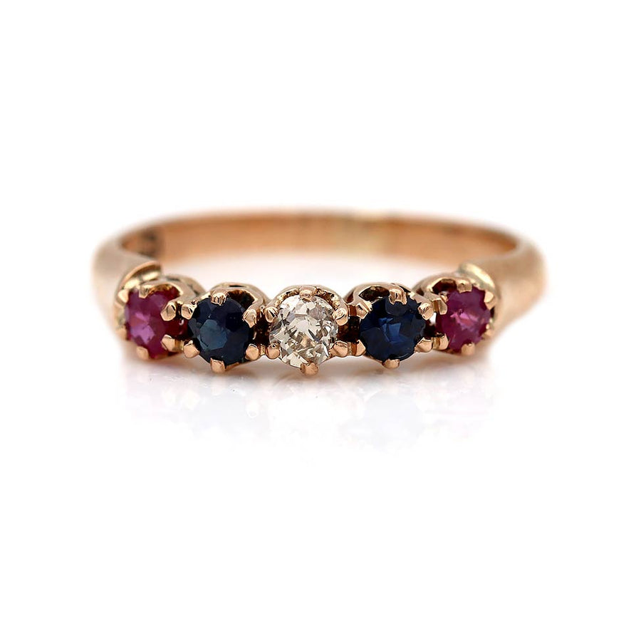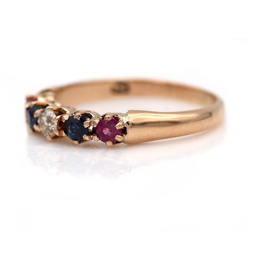 Vintage .50 CTW 14 Karat Rose Gold Ruby Diamond Sapphire Gemstone Wedding Ring