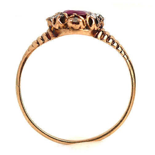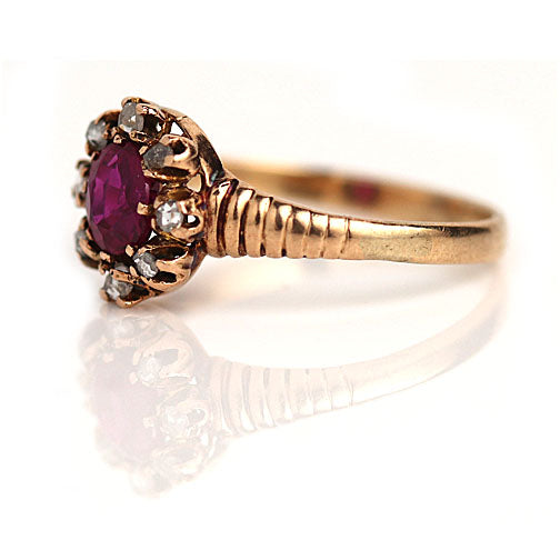 Antique .81 CTW Burma Ruby & Rose Cut Diamond Halo Vintage Engagement Ring