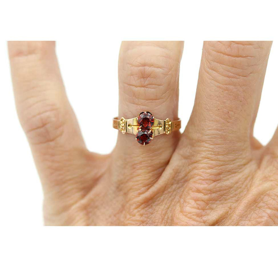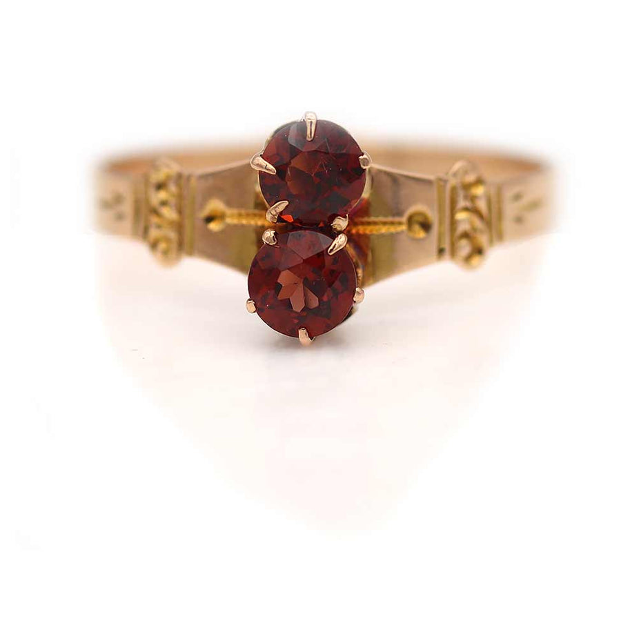 Two Stone Victorian Garnet Rose Gold Engagement Ring