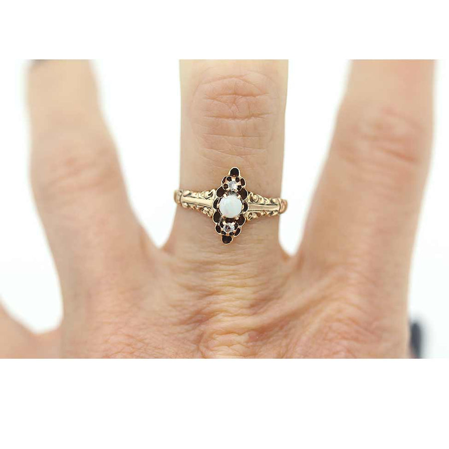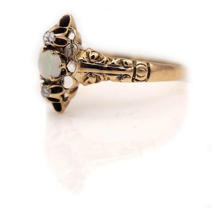 Victorian .40 CTW Opal Rose Cut Diamond Antique Engagement Ring Circa 1900s