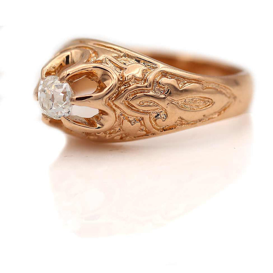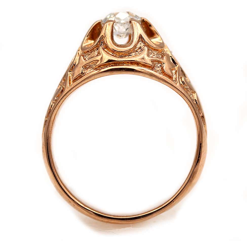 Victorian .55 CTW Old Mine Cut Rose Gold Antique Engagement Ring Circa 1900s