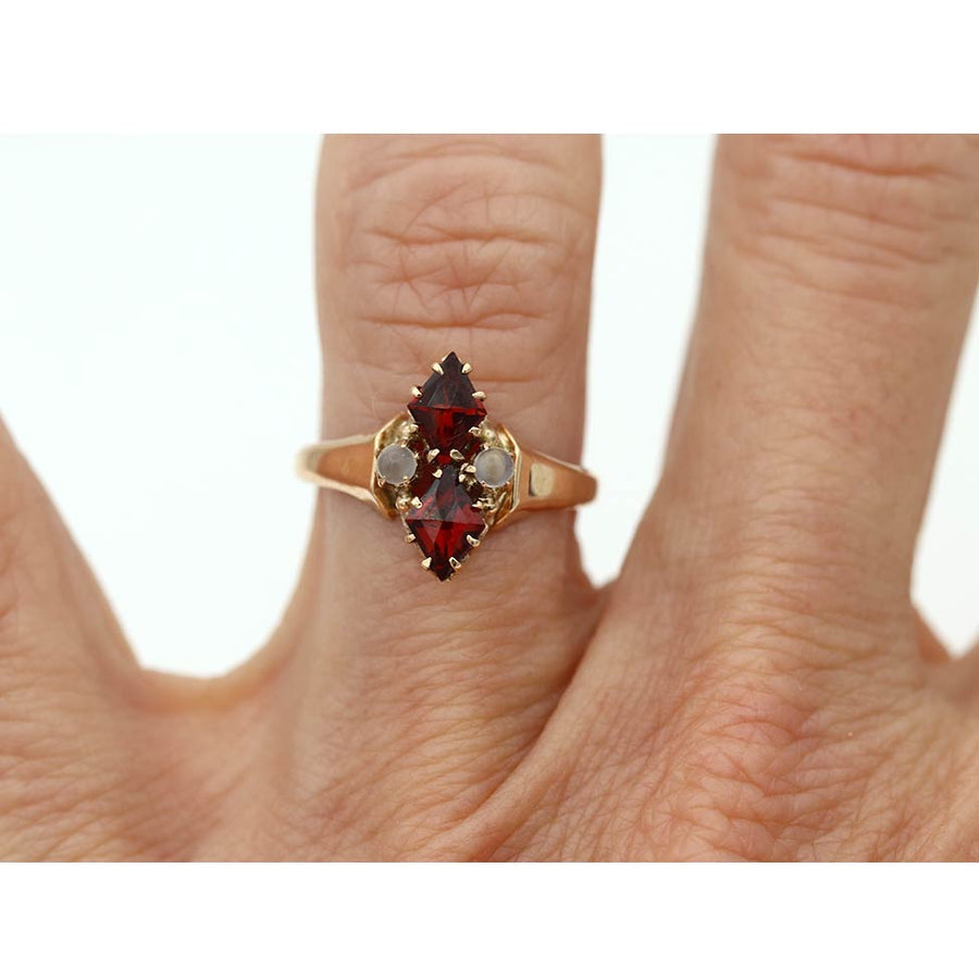 Victorian .60 CTW Twin Kite Shaped Garnet Moonstone Engagement Ring