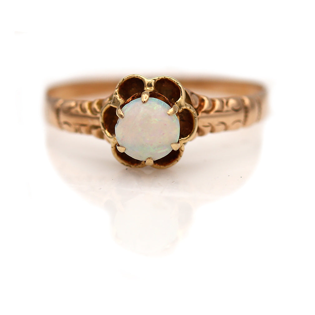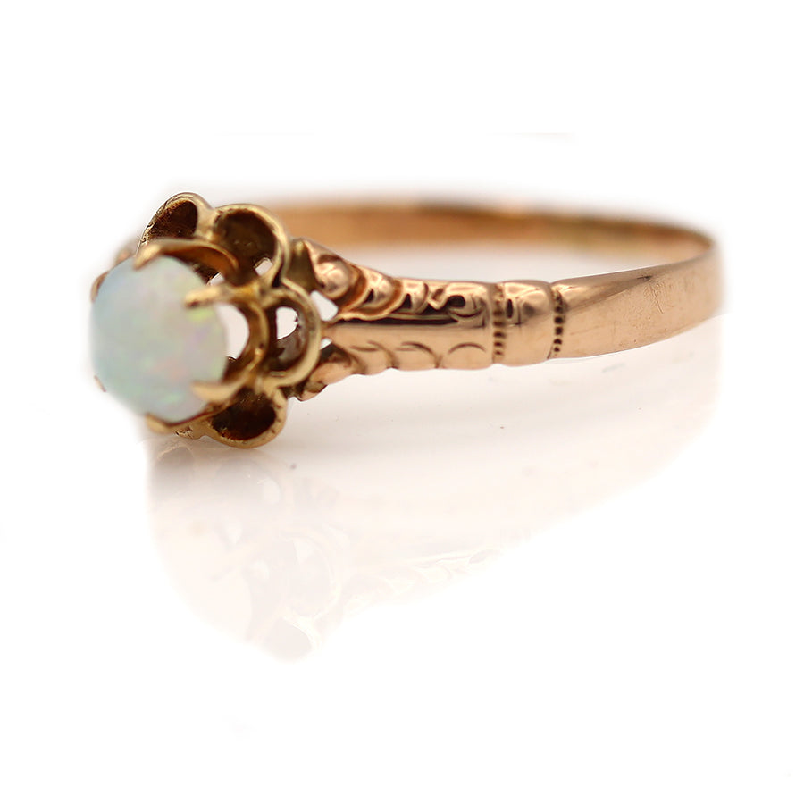 Victorian Cabochon Opal Buttercup Solitaire Engagement Ring
