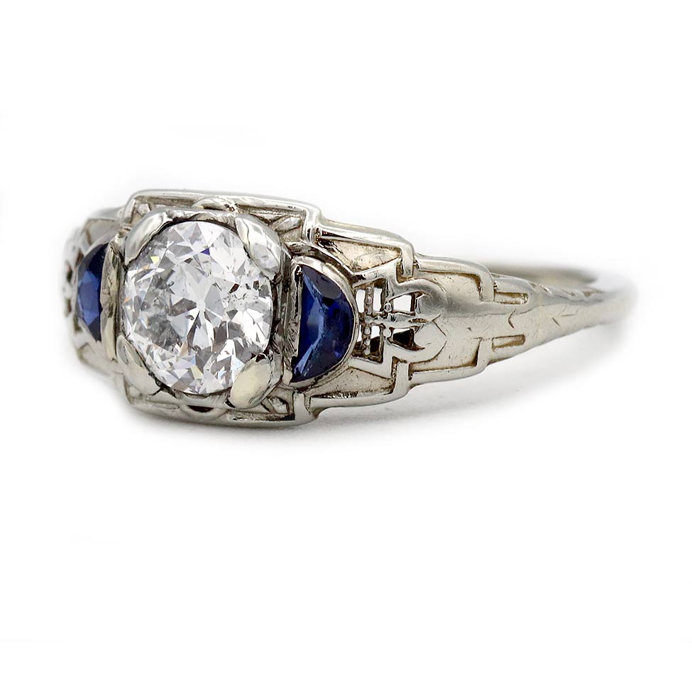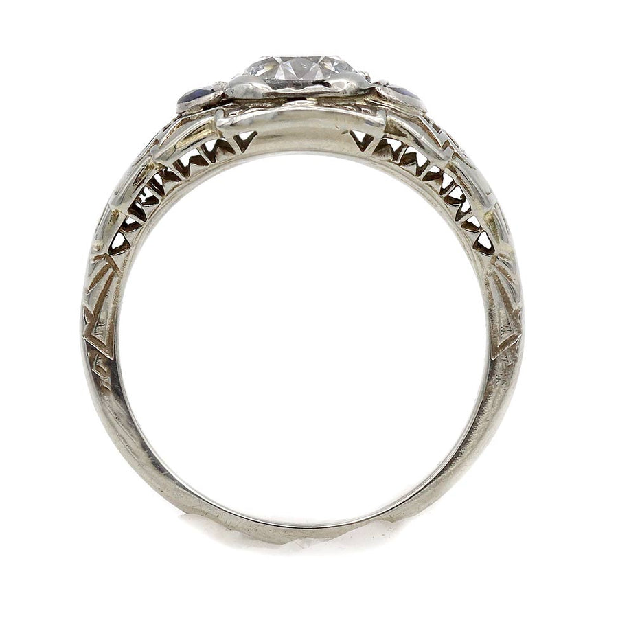 Art Deco 1.00 CTW Vintage Old European Cut Diamond & Sapphire Engagement Ring