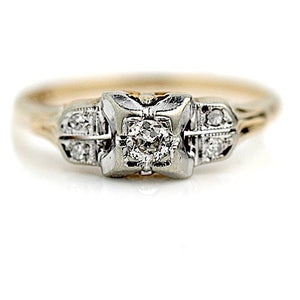 Mid-Century .10 CTW 1940s 14 Karat Two Tone Vintage Diamond Engagement Ring