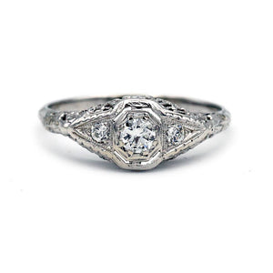 Art Deco 1930s .28 CTW Diamond Antique Engagement Ring with Side Stones