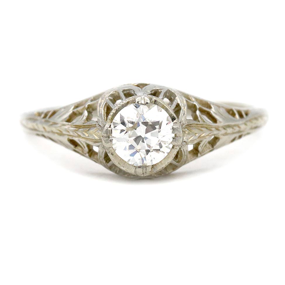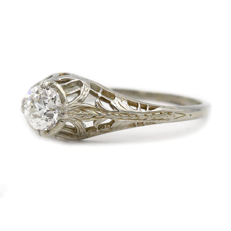 Antique .55 Ct Solitaire European Cut Art Deco Engagement Ring