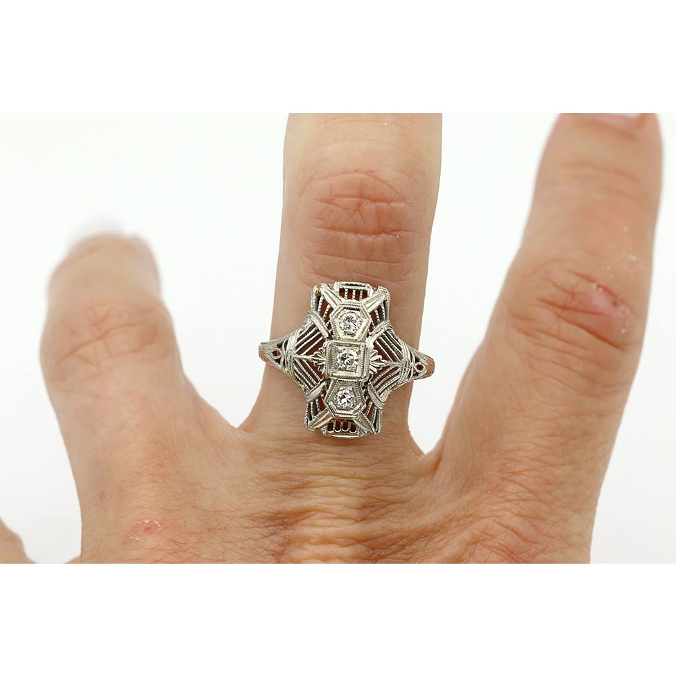 Antique .30 CTW Three Stone Rectangular Art Deco Diamond Cocktail Ring