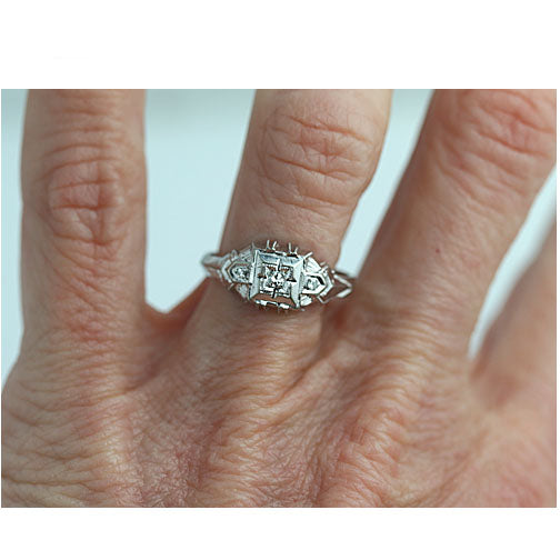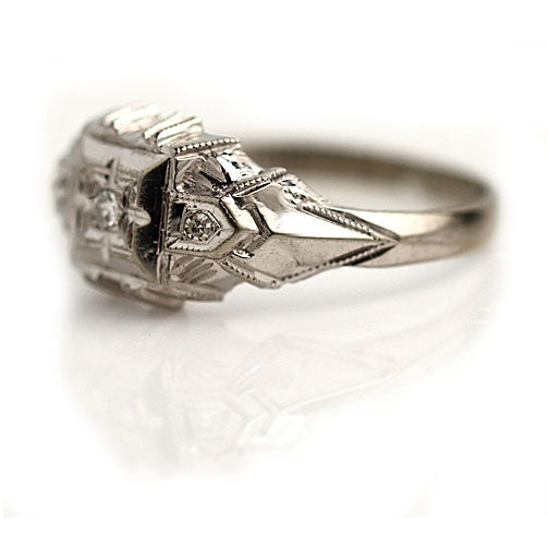 Art Deco .10 CTW Low Profile White Gold Vintage Engagement Ring with Side Diamonds