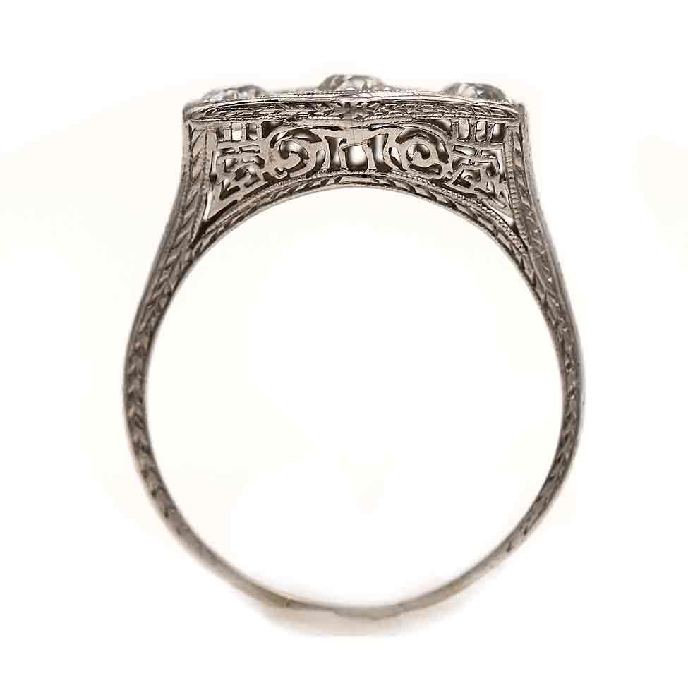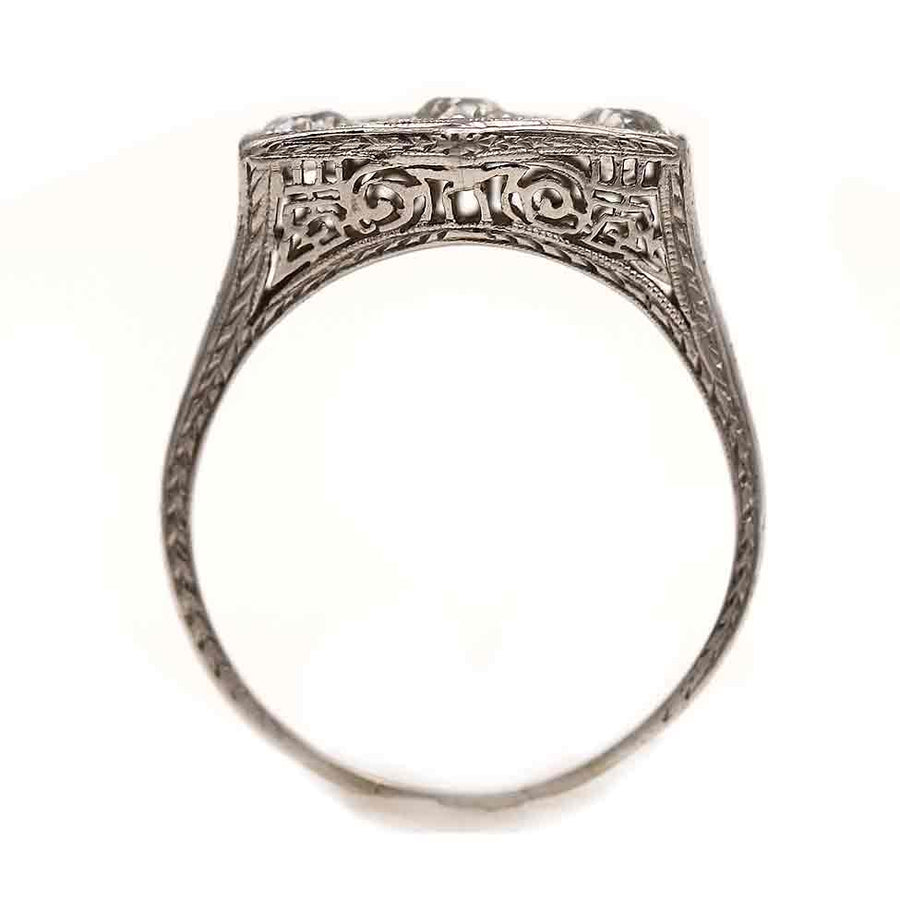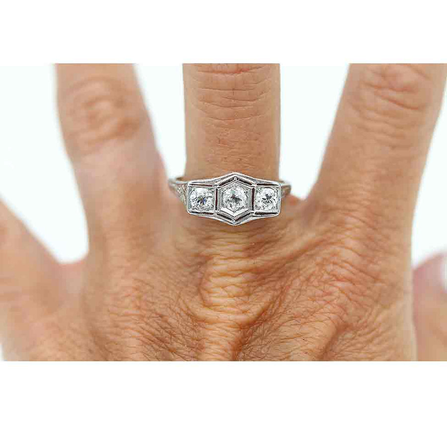 Art Deco .75 CTW Three Stone Old Mine Cut Diamond Engagement Ring