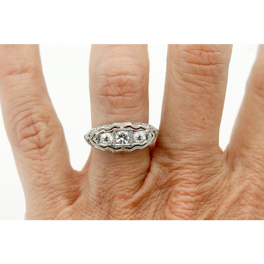 Art Deco Three Stone .50 CTW Old European Cut Diamond Antique Engagement Ring