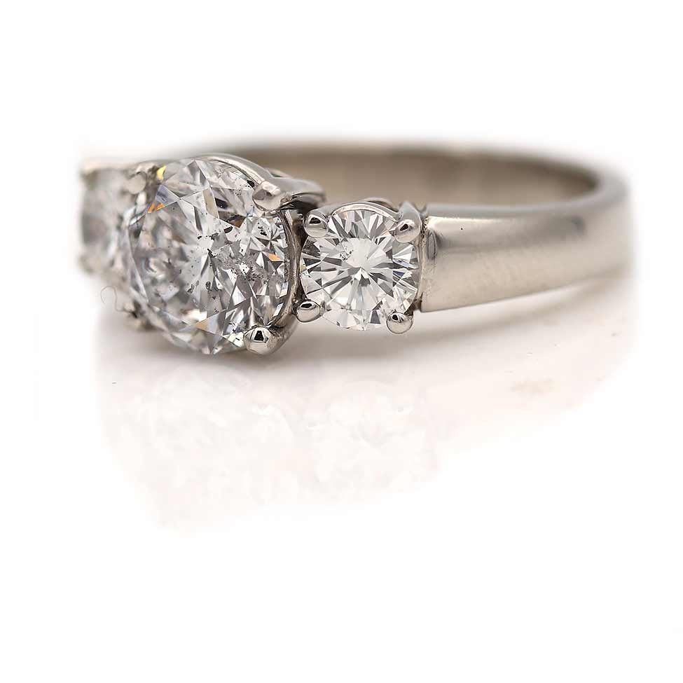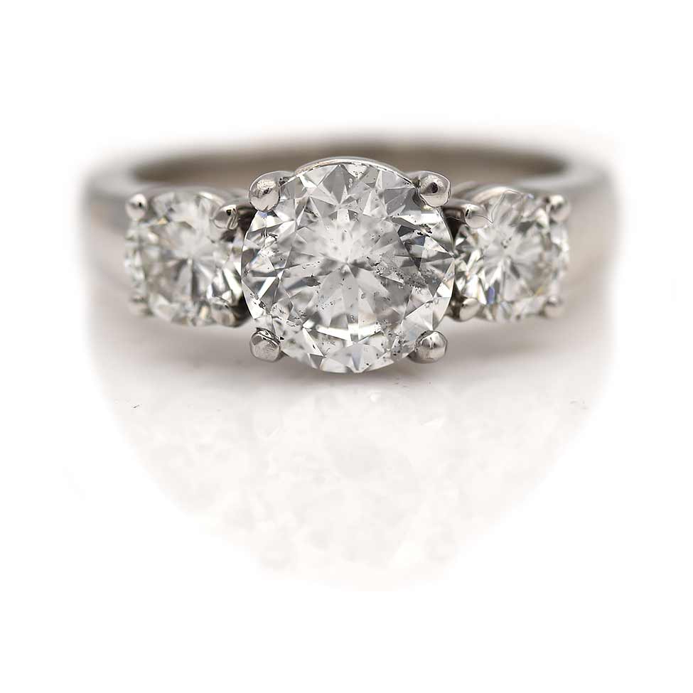 Round Diamond Three Stone Engagement Ring Platinum 2.01 Ct GIA H/I2