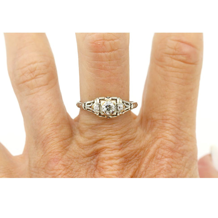 Unique .39 CTW Three Stone European Cut Diamond Vintage Engagement Ring