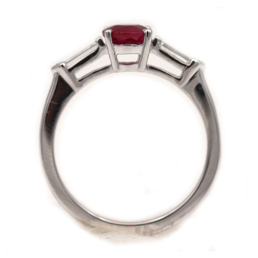 Vintage 1.07 CTW Three Stone Burma Ruby Bullet Cut Diamond Gemstone Engagement Ring
