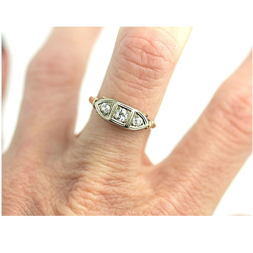 • Vintage Two Tone Three Stone Ring