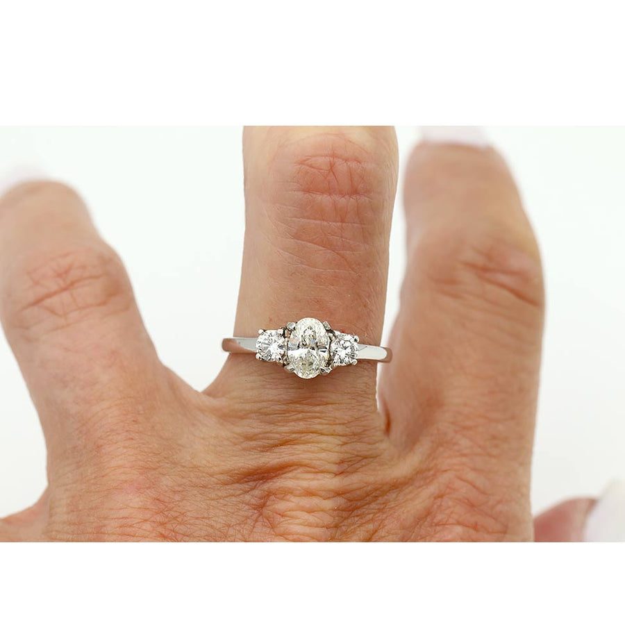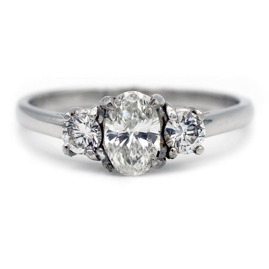 Vintage .91 CTW Oval Cut Diamond Three Stone Engagement Ring
