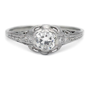 Antique .69 CTW Old European Cut Diamond Art Deco Engagement Ring GIA E/SI2