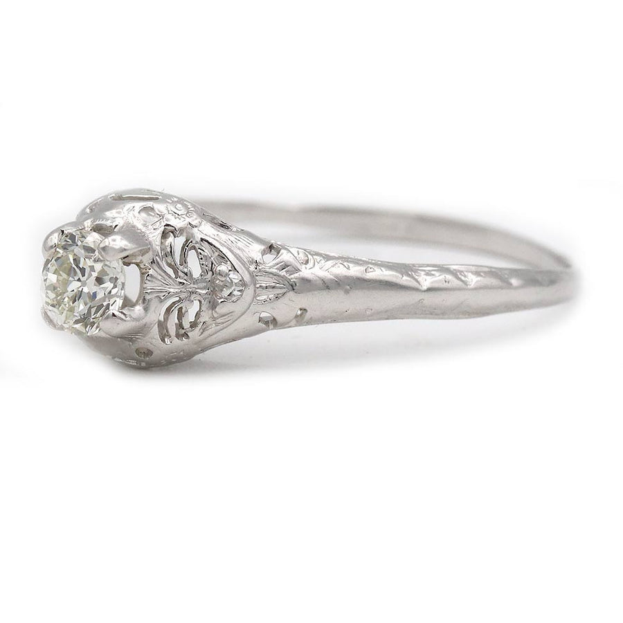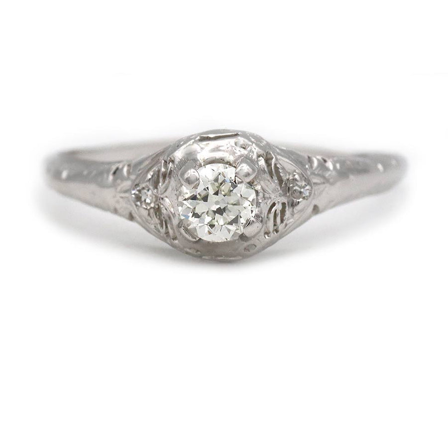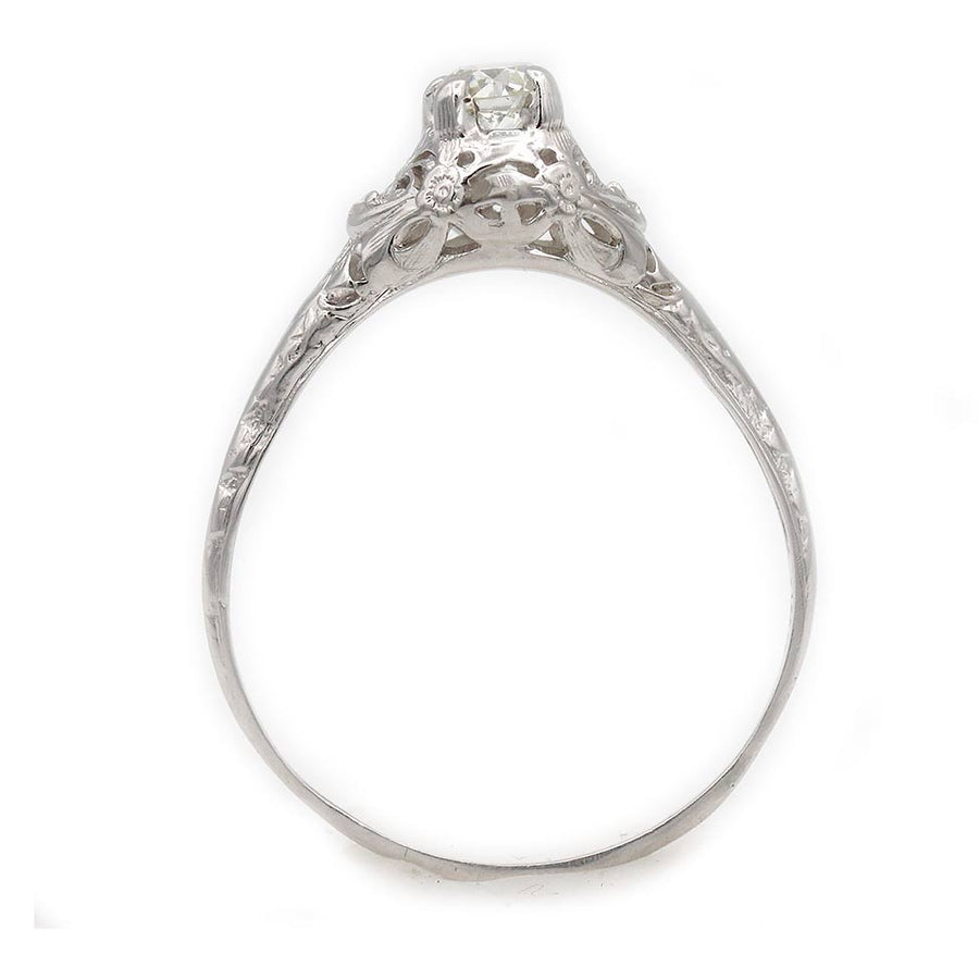 Antique .40 Carat Solitaire Diamond Engagement Ring in 14 Kt White Gold
