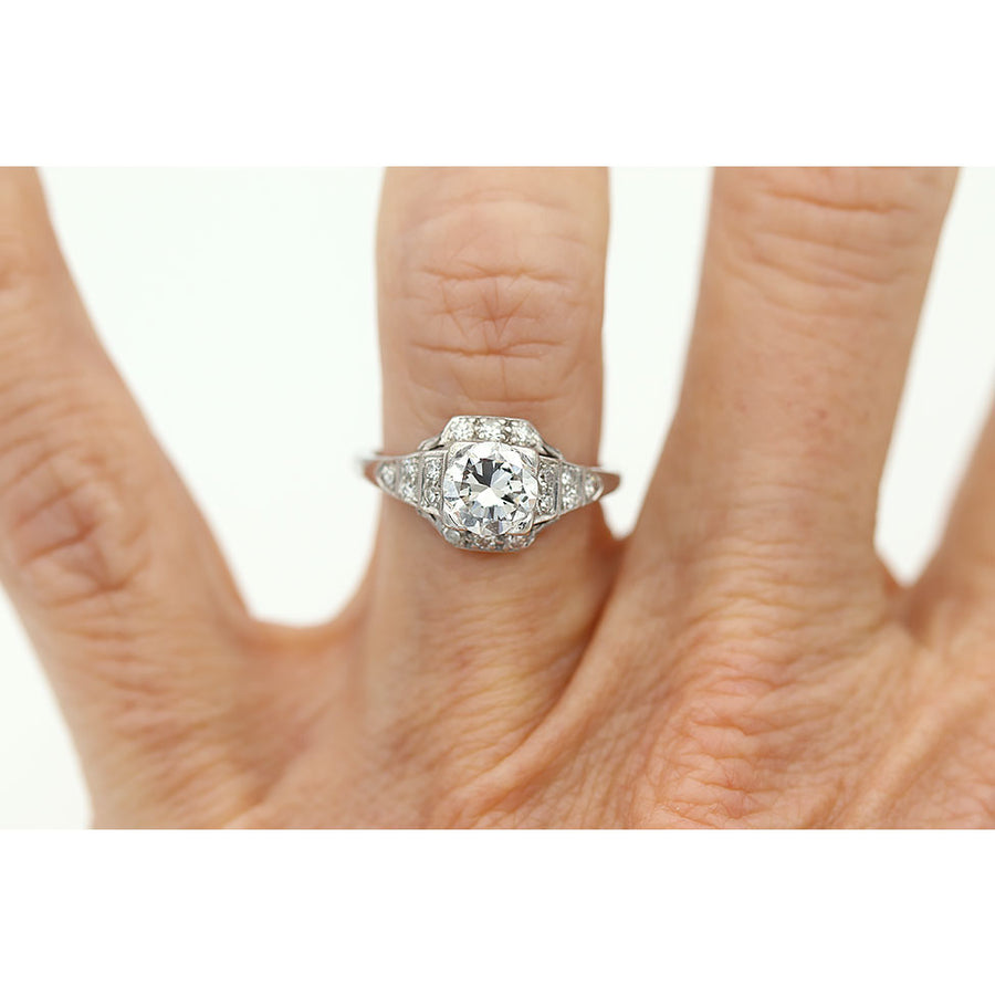 Art Deco Old European Cut Diamond Halo Engagement Ring in Platinum | 1920s