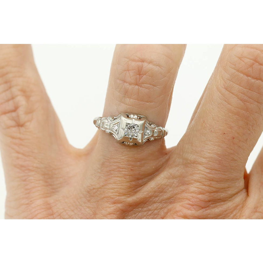 Art Deco .15 Ct Old European Cut Diamond Vintage Engagement Ring