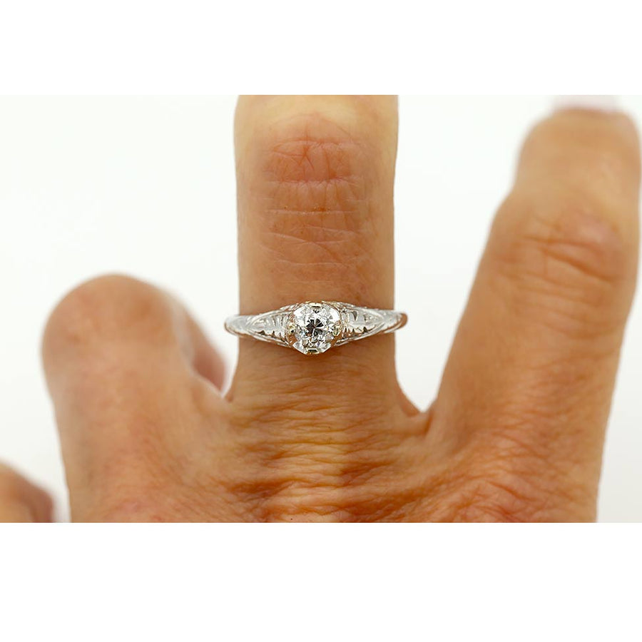 Art Deco .35 CTW Old European Cut Diamond Antique Diamond Solitaire Engagement Ring